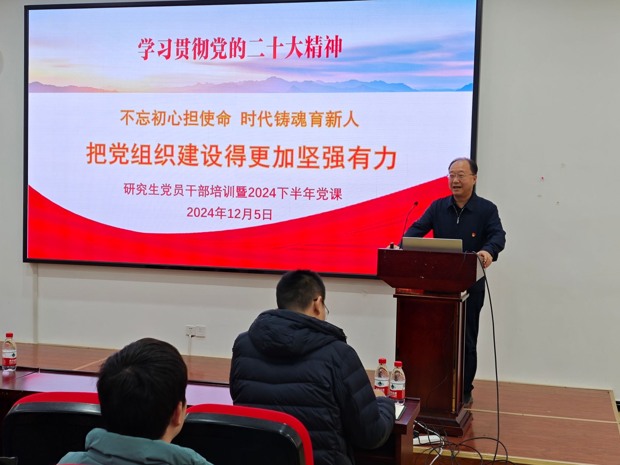 接着,梁玮回顾了关于历届三中全会的主要精神和行动纲领,并详细解读了党的二十届三中全会通过的《中共中央关于进一步全面深化改革、推进中国式现代化的决定》主体内容。他表示,党的二十届三中全会是全面建设社会主义现代化国家的新征程上又一重要里程碑,它标志着以习近平同志为核心的党中央以敢为人先、迎难而上的气魄团结带领广大人民在全面深化改革领域创造了无数伟大的实践成就。各位研究生党员干部要深入学习党的二十届三中全会精神,砥砺奋进、行而不辍,让青春在为中国式现代化挺膺担当中焕发绚丽光彩。