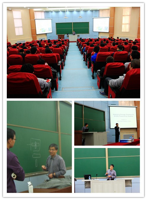 23日下午,刘兑现教授在北校区教学楼J112教室做了题为“Antenna-in-Package Solutions for 60GHz Phased-Array Systems”的学术报告,刘兑现教授在报告中详细介绍了60GHz毫米波在无线传输中的应用、优势和目前国际上的研究状况,讲授了其天线各模块的设计、材料、结构、工艺等软硬件关键技术,并对该领域技术未来的发展方向做了展望。英国上市公司365200余名师生参加了本次报告会,并在报告会上与刘兑现教授进行了学术交流。