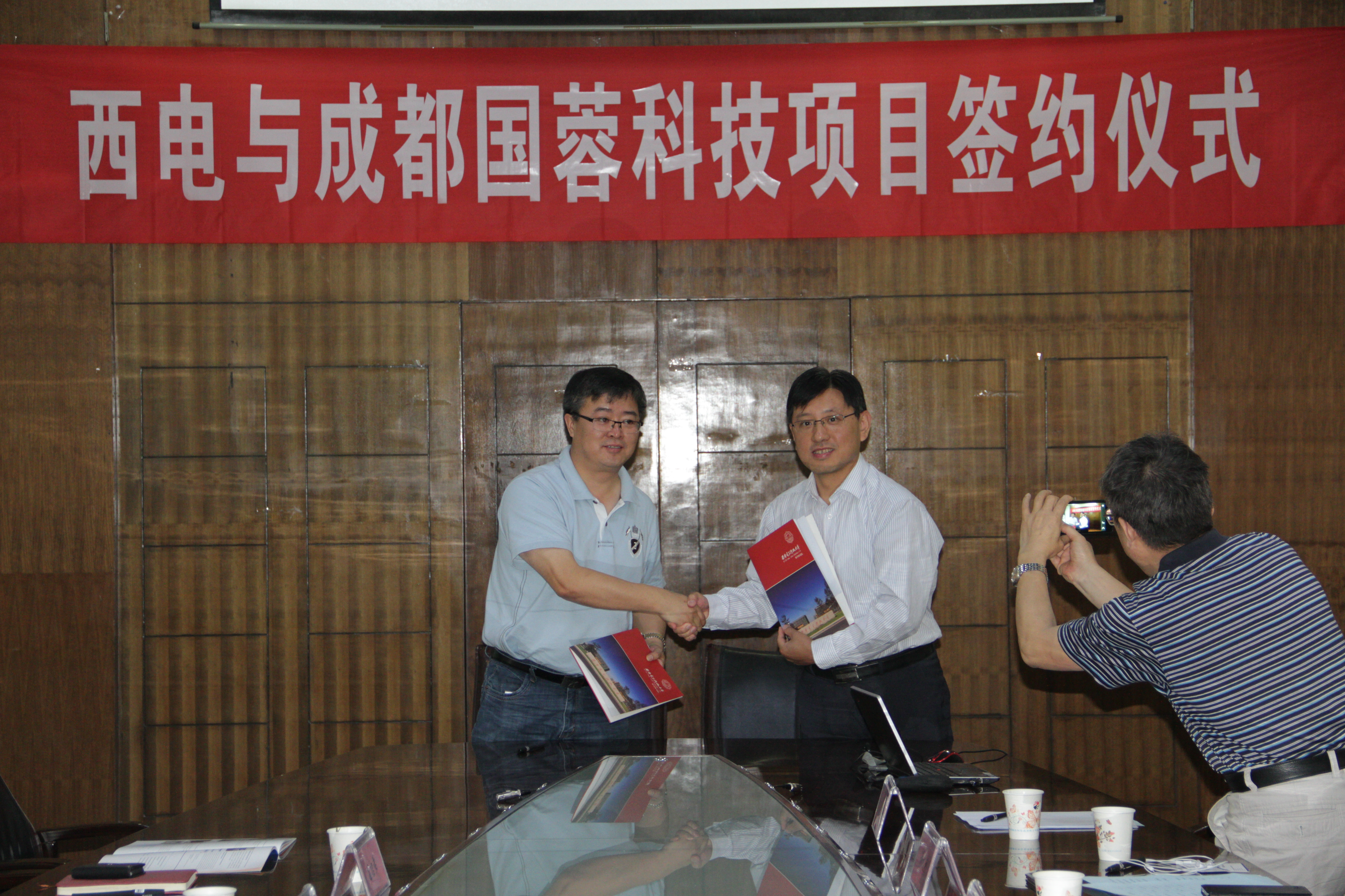 (通讯员 葛持恒)5月26日上午,华讯方舟副总裁/成都国蓉科技有限公司党委书记贺和平一行到英国上市公司365洽谈交流合作并与公司签订项目合作协议,英国上市公司365经理仇原鹰、公司党委书记林松涛、科研院科研成果管理办公室主任许权利、西电电工电子教学基地中心副主任周佳社、课题负责人王水平,公司办公室副主任葛持恒参加了座谈会。座谈会由英国上市公司365科研副经理黄进主持。
