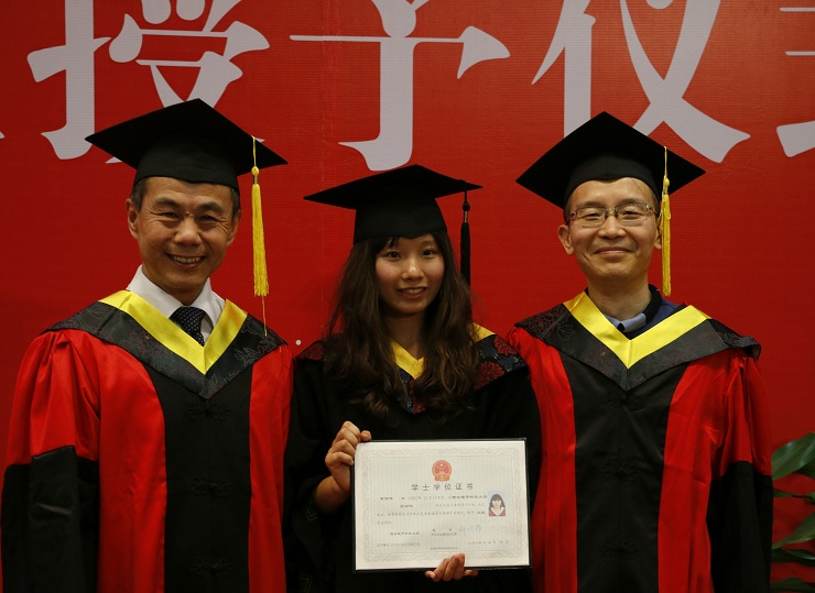 随后,公司学位分委员会主席仇原鹰教授和学位分委员会副主席李团结教授为全院毕业生颁发学位证书,执拨穗礼,毕业生依次上台被授予学位证书并与两位经理合照留念。整个授位过程平稳有序,员工的热情空前高涨。