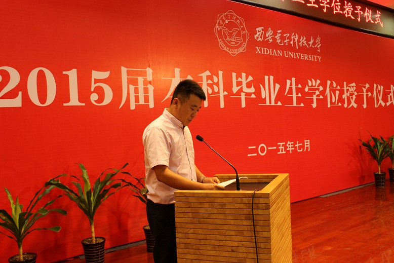 仪式的最后,公司党委副书记陈波代表公司对即将踏上新的征程的2015届毕业生寄语,他说,希望同学们秉承“艰苦奋斗、自强不息、求真务实、爱国为民”的西电精神,做到志存高远、脚踏实地,并祝愿大家拥有无限广阔美好的前景和幸福美满的生活。仪式在热烈的掌声之中落下帷幕。