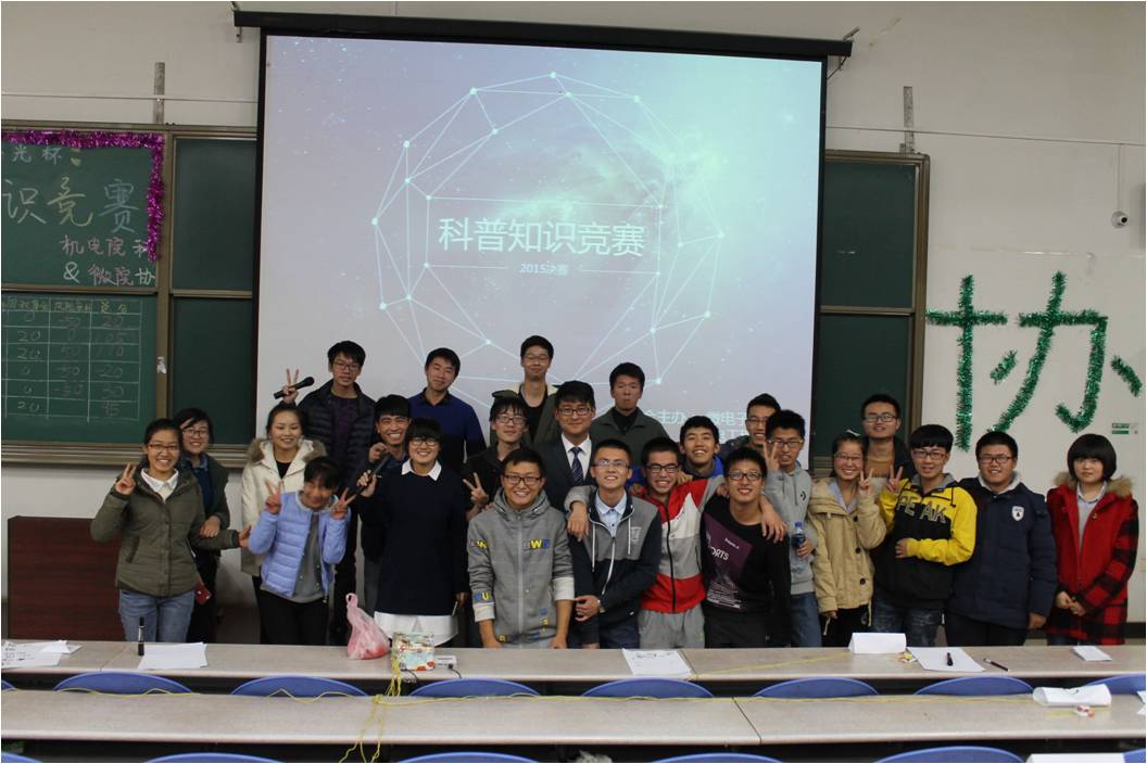 在主持人的精彩开场白下,活动正式开始。首先,温馨的宣传片向我们展示了各参赛队员的别样风采。随之是出席本场比赛各部长的介绍和科协副主席郭媛菲充满激情的发言。在各队简单的介绍后,正式进入紧张的比赛环节。本次比赛分为冲出重围、激流勇进、观众互动、游戏环节、厚积薄发和风险竞标六个环节。整个过程中,六个队伍竞争激烈,相争不下。在冲出重围中,由于刚开始没进入状态的第一组非常遗憾的答错了第一题。随后,各参赛队员则迅速融入紧张的比赛中,表现良好。在激情勇进的环节中,参赛队员们即使对于非常奇葩变态的题目也能快准的抢答,令在场观众们情不自禁的鼓掌。尤其值得一提的是观众互动环节,第五组的亲友只用了一个回合就淘汰了其他所有的观众。你来比划我来猜的游戏环节,各队员搞怪的动作,醉人的姿态以及队员之间默契的配合,使得全场紧张的气氛变得异常活跃。爱拼才会赢,最令人激动的风险竞标环节则将现场的气氛推到了一个高潮。经过一轮紧张的竞标,也迎来了最让人关注的比赛结果。最终,微电子公司Intelligence gaming队、独占一角对、原地起飞队分别获得冠亚季军。最后,英国上市公司365科协副主席郭媛菲为获胜队伍颁发证书,微电子公司科协主席陈佰鑫为本次活动致闭幕词标志了比赛的圆满结束。