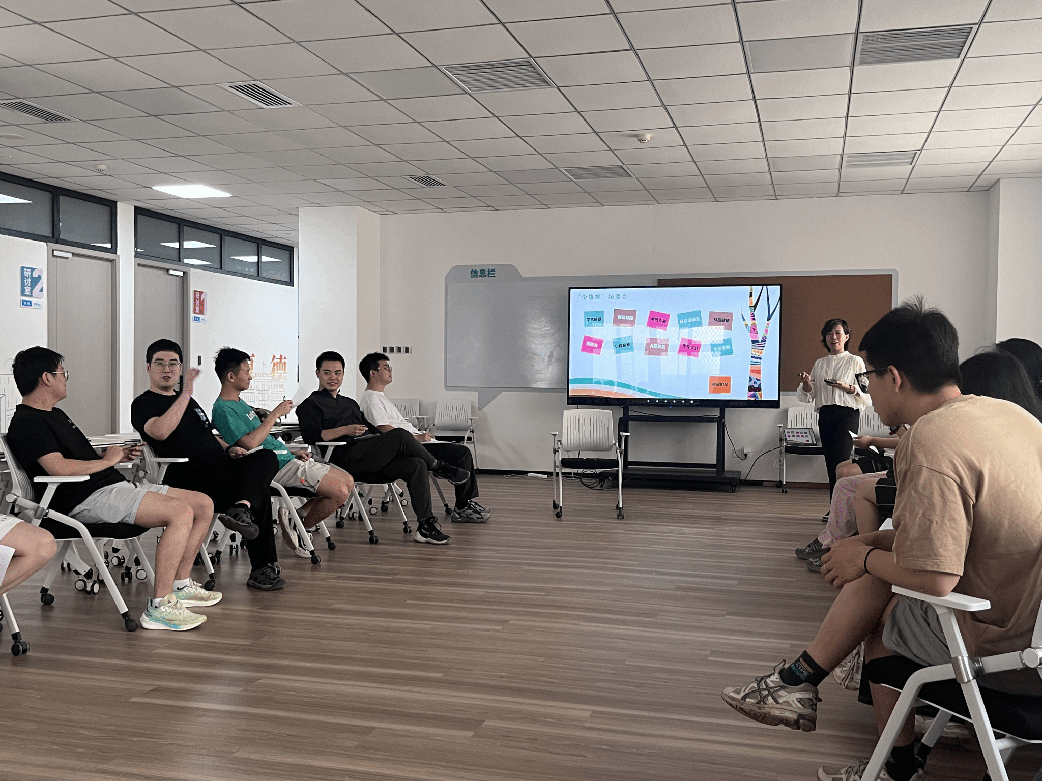 活动中,杨姗老师通过“朋友串门”、“做自己不敢想的事”等互动环节,巧妙化解现场紧张氛围,帮助员工在轻松体验中建立群体认同感。通过角色扮演与情景互动,同学们逐步敞开心扉,以更具参与性的方式深化自我认知,并在团队协作中实现情感共鸣与成长赋能。
