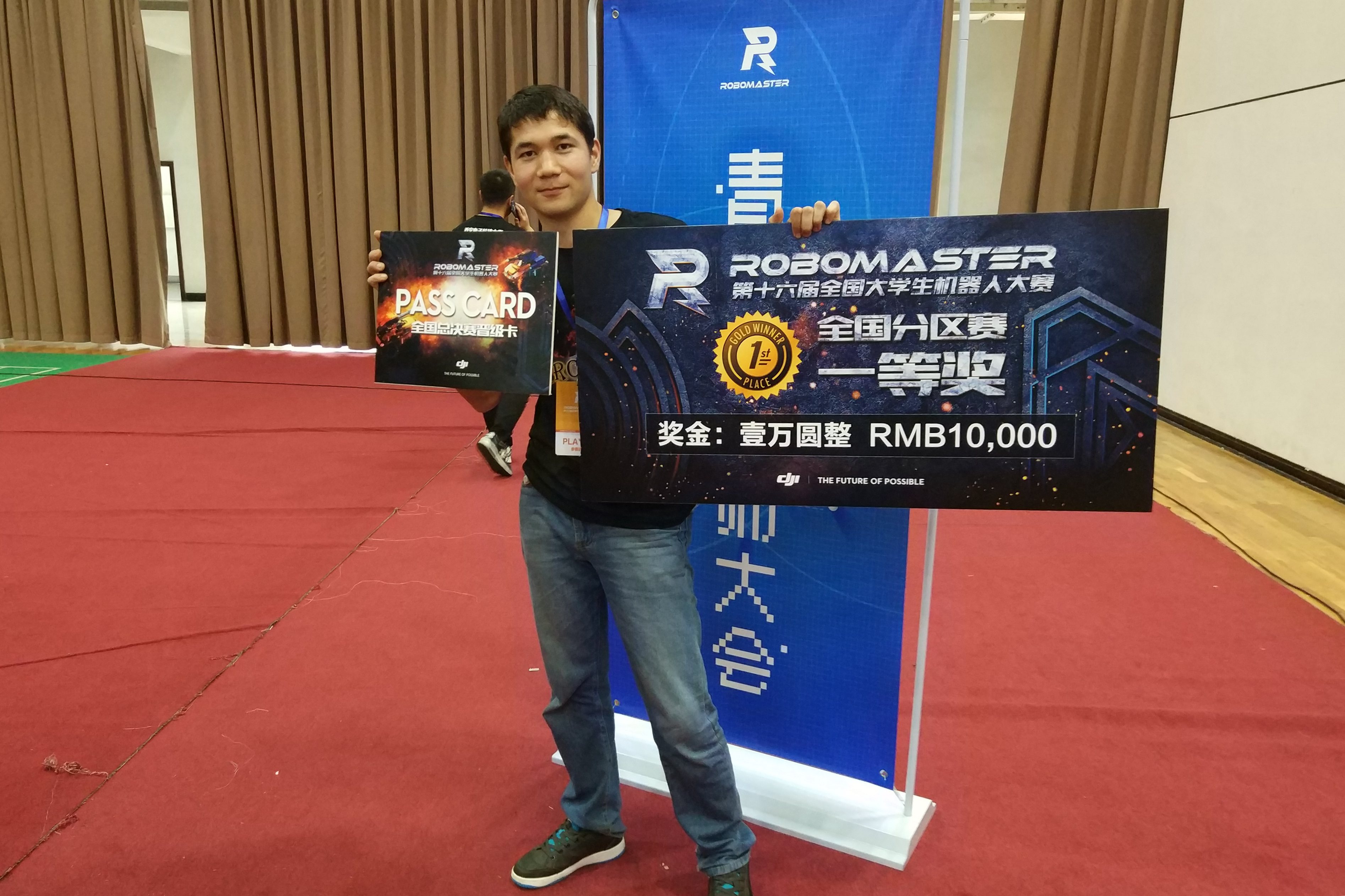 伊力,不仅仅酷爱飞机,他对机器人也有浓厚的兴趣,2017年5月伊力团队参加了ROBOMASTERS机器人大赛,为了准备比赛,他们每天早晨6点半开始正常的课业学习,从下午到晚上11点半一直在工作室研究机器人的制作,直到宿舍楼关门才回宿舍,赛前一个月几乎没回过宿舍,学习、工作、吃饭、睡觉都在工作室解决。诚则金石为开,他们最终获得全国总决赛晋级卡,并取得全国一等奖的佳绩。