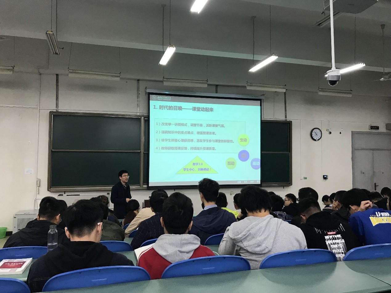 段老师分别从三个角度讲述了雨课堂给现代教学带来的益处:“时代的召唤—课堂动起来”,“先进的工具—效率提起来”,“课程的形势—精神抖起来”。为了让同学们切身体会到雨课堂教学效果,他在平时的课上以及此次的讲座均采用雨课堂工具。