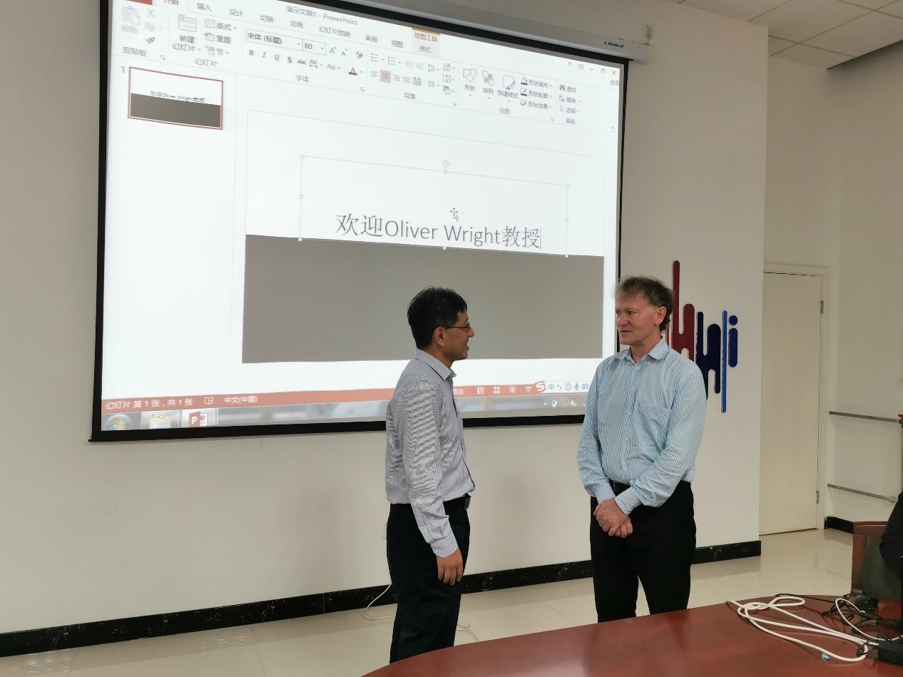 Wright教授与公司英国上市公司365经理黄进经理,测控系系主任陈晓龙教授交换了名片并进行了深入的交谈,相互交流、相互学习、共同提高。
