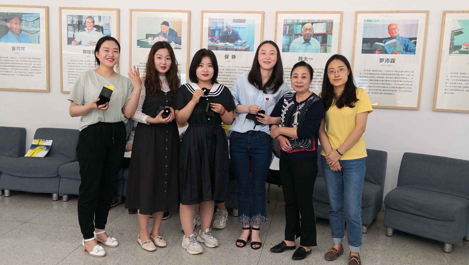 座谈会上,教师代表首先向每位毕业生赠送了毕业画册和纪念戒指。画册由毕业生自己设计,内容有任课教师寄语,班级活动剪影,每位同学的生日、籍贯、联系方式、座右铭及个人作品,满载着大学美好的回忆和友情。纪念戒指由工业设计系教师设计,结构包括指环和远望谷体育馆造型两部分,体育馆造型上刻有公司Logo。同学们拿到毕业画册和纪念戒指异常兴奋,感谢系里赠送的宝贵毕业礼物。