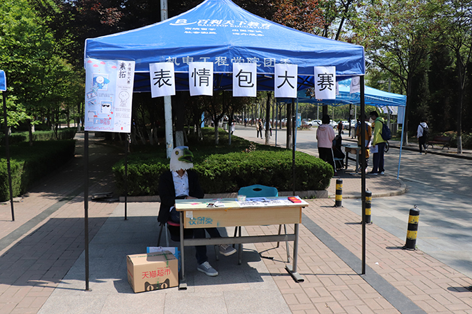 上午十一时,工作人员搭好外场,准备好礼品,等待同学们的到来。中午十二时,外场迎来了火爆的人潮,工作人员为同学们耐心地讲解了此次活动,神秘沙雕头人还为同学们带来有趣的小游戏。下午三时,外场活动圆满结束。