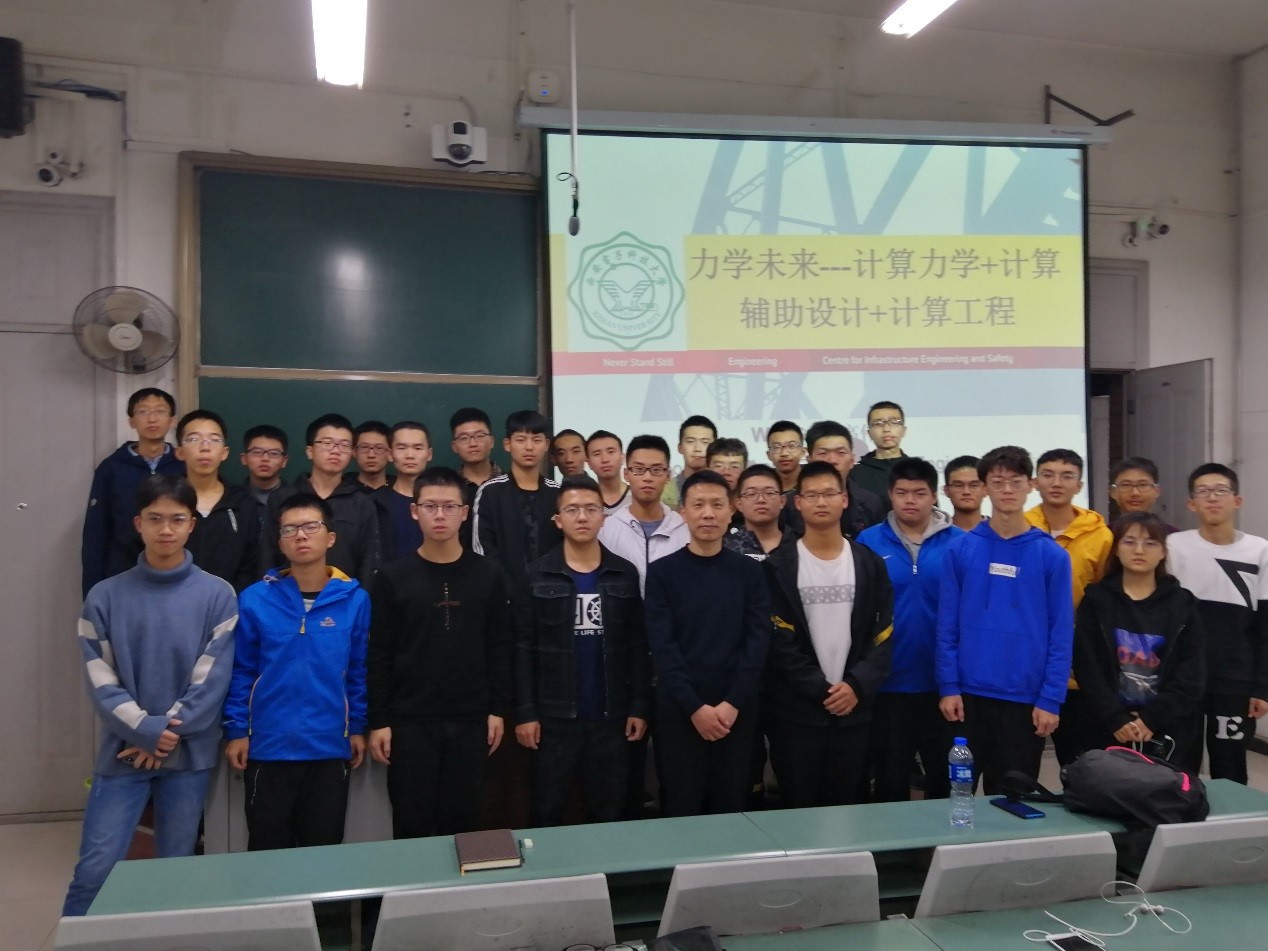 9月18日晚七点半,郑晓静院士与高伟教授第一次走进课堂,同学们自发的掌声经久不息。在介绍完授课教师和开设这门课程的目的后,郑院士开始了第一次授课,用生动而又通俗易懂地语言拉开了同学们期盼已久地学术盛宴的序幕,循序渐进的给出了《力学通识及前沿概论》这门课程的逻辑架构与内容:品味力学—力学发展历程、力学之美—力学在工程科学中不可替代的基础性和重要性、工程安全—计算不确定性力学、数据时代—人工智能与力学的融合、力学未来—力学与辅助设计手段和计算工程相结合、力学机遇和挑战—极端服役条件下的力学前沿问题等几个方面组成。郑院士的第一次课围绕着两个方面进行了展开,即“关于力学”和“力学与航空”。上课的同学们聚精会神,仔细听着每一个板块的内容,频频点头,互动环节同学们纷纷踊跃参与,课堂气氛热烈。郑院士在授课的过程中讲到历史、讲到祖国的发展,嘱托西电的员工能以开拓的眼界、旷阔的胸怀立大志、干大事,报效祖国。
