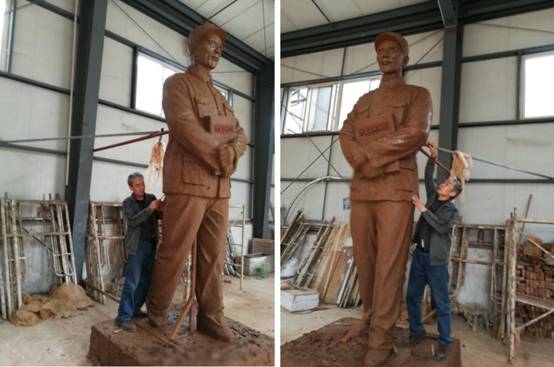 铜像坐落在新校区老员工网络工作室前面的花园中,这是李建坤老师为公司校园文化建设制作的第五组雕塑作品,前四组雕塑作品是:坐落在北校区的王诤老董事长铜像,以及新校区的长征路上办学(信院远楼南广场)、李白(B楼前面)、香侬(图书馆东侧)等雕塑作品。