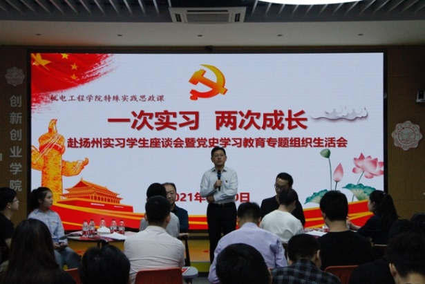 在党史学习教育专题组织生活会环节,9名党员从自身经历和实习感悟出发,讲述自己在此次滞留扬州期间开展的工作、存在的问题及改进措施,分享了自身的真切体会以及对学习习近平总书记“七一”重要讲话精神的感悟。公司工设电封系纵向员工党支部书记陈朝晖老师在点评中对9名党员的发言表示认可,表示大家能正确认识各自在扬期间的表现和不足,希望同学们进一步坚定政治信仰,善于作为、敢于担当,努力成长为堪当民族复兴重任的时代新人。
