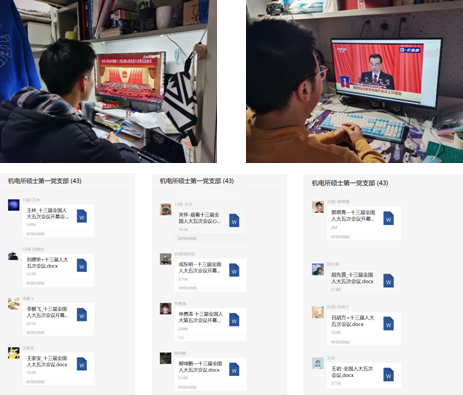 机电所硕士第一党支部的同学们在观看完开幕会后纷纷分享了自己的感想。李鹏飞同学说,通过关注两会报告,得到了很多启示,能让我们更快的成长,更清楚的了解国情,更好的关注未来;作为一名硕士研究生,一名中国共产党员,在思想上我要认真学习两会精神,紧跟中央文件。在行动上,要切身体会大会精神以实际行动拥护党中央所做出的决定。柳坤鹏同学表示,中国的发展从来都是在应对挑战中前进的,中国人民有战胜任何艰难险阻的勇气、智慧和力量。我们要更加紧密地团结在以习近平同志为核心的党中央周围,高举中国特色社会主义伟大旗帜,以习近平新时代中国特色社会主义思想为指导,攻坚克难,砥砺奋进。
