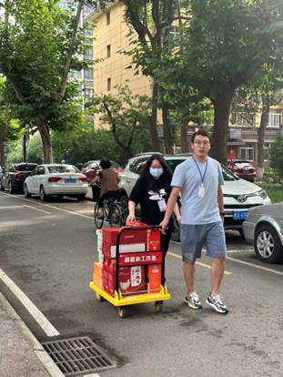 志愿者们分成小组,在领取到福利名单和慰问品后,立即和对应老教师进行电话沟通,确认地址,确保将每一份慰问品按时送达。经过一早上的努力,志愿者们将所有的慰问品送至老教师家中,同时也将公司对离退休教职工的关爱圆满送达。