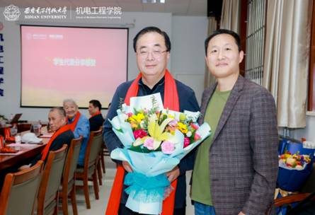 与会人员为电子机械系仇原鹰老师、邱扬老师、朱敏波老师和机关左愿远老师举办了隆重简朴、温情暖暖的荣休仪式。陈武和电子机械系党支部书记叶俊杰、系主任马娟深情回忆了四位老师在公司、公司多年的工作经历,公司往届毕业生从全国各地发来祝福视频,表达了对老师诚挚的感激和真诚的祝福。梁玮和黄进为四位老师颁发荣休证书,衷心感谢各位老师在西电的辛勤付出,希望老教师常回“家”看看,积极为公司建言献策,也希望公司的青年教师能够向老教师虚心请教,努力进步。随后,梁玮、王蓓金和王瑞红为从教70周年的姚传治老师和从教60周年的刘鹏程老师颁发了“从教秩年”纪念章,送上重阳节祝福。