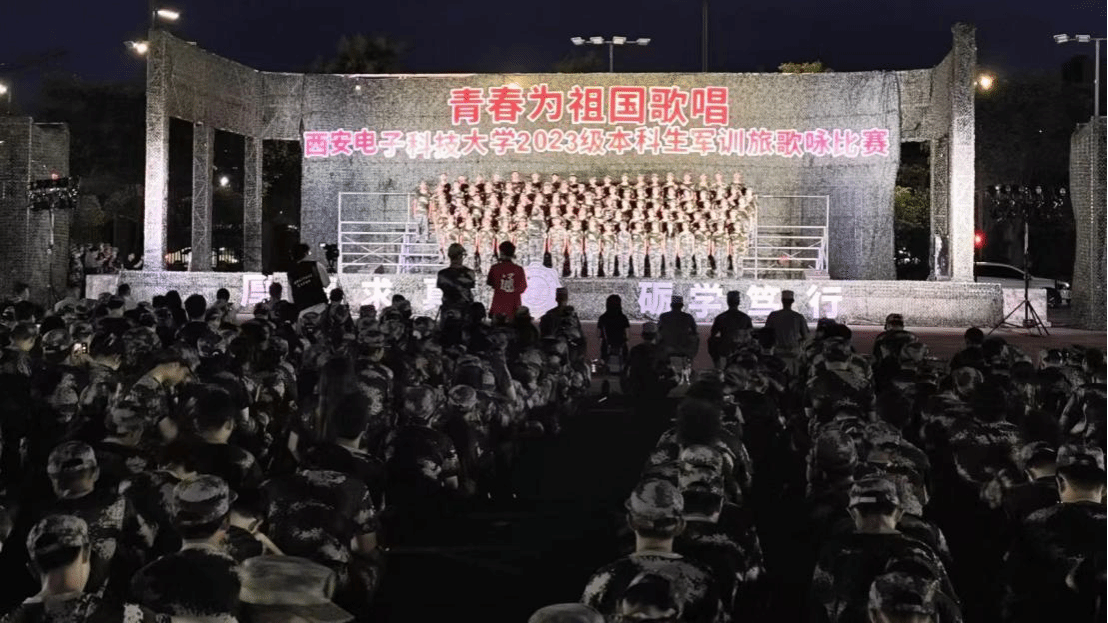 红歌嘹亮,青春飞扬。在军训的尾声,公司举行了“青春为祖国歌唱”军训旅歌咏比赛,公司学子在认真完成军事训练的同时,踊跃报名参加,由公司100余名本科生组成的合唱队在公司文工连的指导下刻苦练习,在比赛中为大家带来了校歌《与共和国同行》以及《强军战歌》,同学们用歌声传递着青春的力量,用音乐诉说着成长的故事,青春的旋律与坚定的口号交织成一幅幅动人的画面,展现了新时代机电学子的飒爽英姿和爱国情怀。