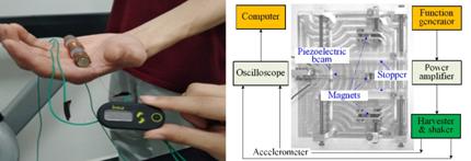 研究从器件工作的周围环境中收集废弃的能量,如机械振动能、热能、流动能等,向各种低功耗器件供电,实现自供电、自驱动、自维持的微系统、微器件。