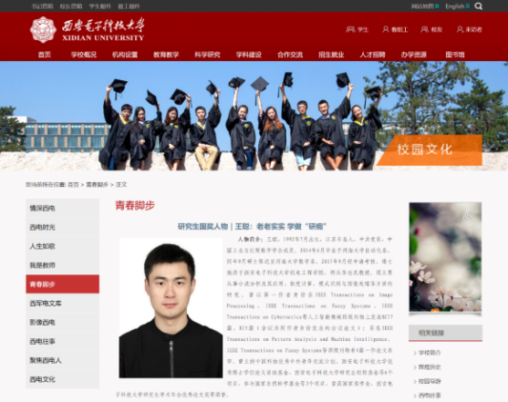2020年7月,西电官媒专题报道“研究生国奖人物”